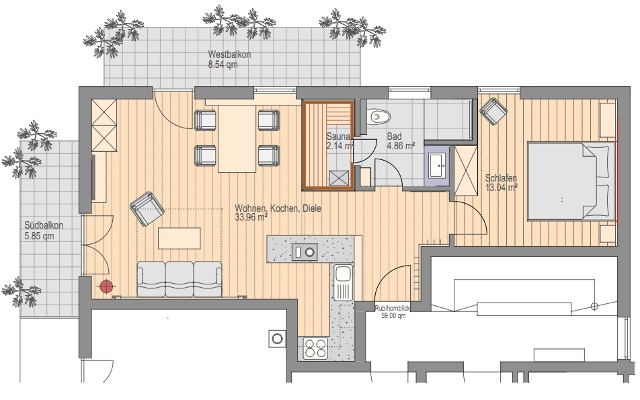 In der im Wellness-Bad integrierten Sauna können Sie sich nach einem ereignisreichen Tag ungestört entspannen.